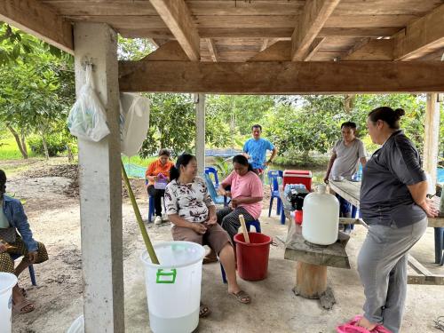 พช.ป่าบอน ขับเคลื่อนการพัฒนาศูนย์เรียนรู้การพัฒนาคุณภาพชีวิตตามหลักทฤษฎีใหม่ ประยุกต์สู่ “โคก หนอง นา” อย่างต่อเนื่อง นายอาทร อร่ามวงศ์ พัฒนาการอำเภอป่าบอน มอบหมายนายจารุพงษ์ อุทัยรังษี พัฒนากรผู้ประสานงานตำบลหนองธง ดำเนินกิจกรรมการขยายผลการน้อมนำหลักปรัชญาของเศรษฐกิจพอเพียง สู่ครัวเรือนโดยรอบศูนย์เรียนรู้ฯขับเคลื่อนกิจกรรมพัฒนาฐานเรียนรู้ แปลง โคก หนอง นา นายวินัย ชูมณี หมู่ที่ 4 ตำบลหนองธง จำนวน 10 ครัวเรือน ในการทำน้ำยาล้างจาน น้ำยาซักผ้า และน้ำยาปรับผ้านุ่ม ตลอดจนการแบ่งปันเมล็ดพันธุ์ เพื่อขยายผลให้ครัวเรือนที่เข้าร่วม สามารถนำไปปรับใช้ในการลดรายจ่าย สร้างรายได้ในครัวเรือนต่อไป อำเภอป่าบอน : “โตนสะตอสวยล้ำ อ่างเก็บน้ำงามงด สับปะรดขึ้นชื่อ เลื่องลือสละหวาน ถิ่นฐานชาวมันนิ เกจิดังอาจารย์ผล”